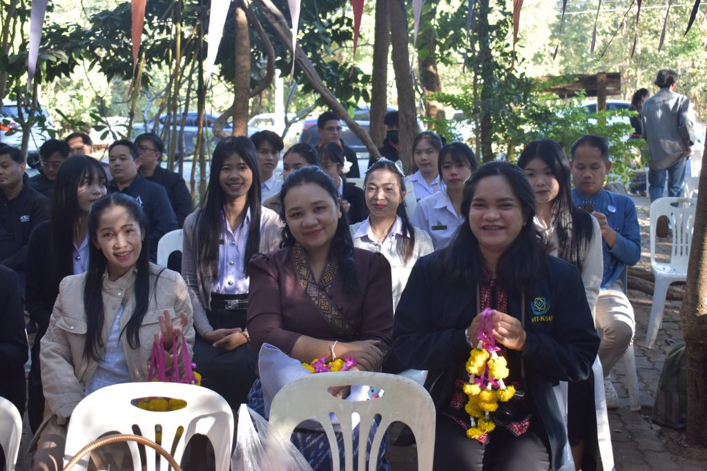 บรรยากาศภายในพิธีเป็นไปด้วยความเรียบง่าย อบอวลไปด้วยความเคารพ ศรัทธา และความสามัคคี โดยมีคณาจารย์ บุคลากร และนักศึกษาเข้าร่วมพิธีอย่างพร้อมเพรียง สะท้อนถึงการร่วมกัน สืบสานความเชื่อ เรียนรู้รากเหง้าวัฒนธรรมท้องถิ่น และรวมพลังศรัทธาของชาว มกส. ไว้เป็นหนึ่งเดียว