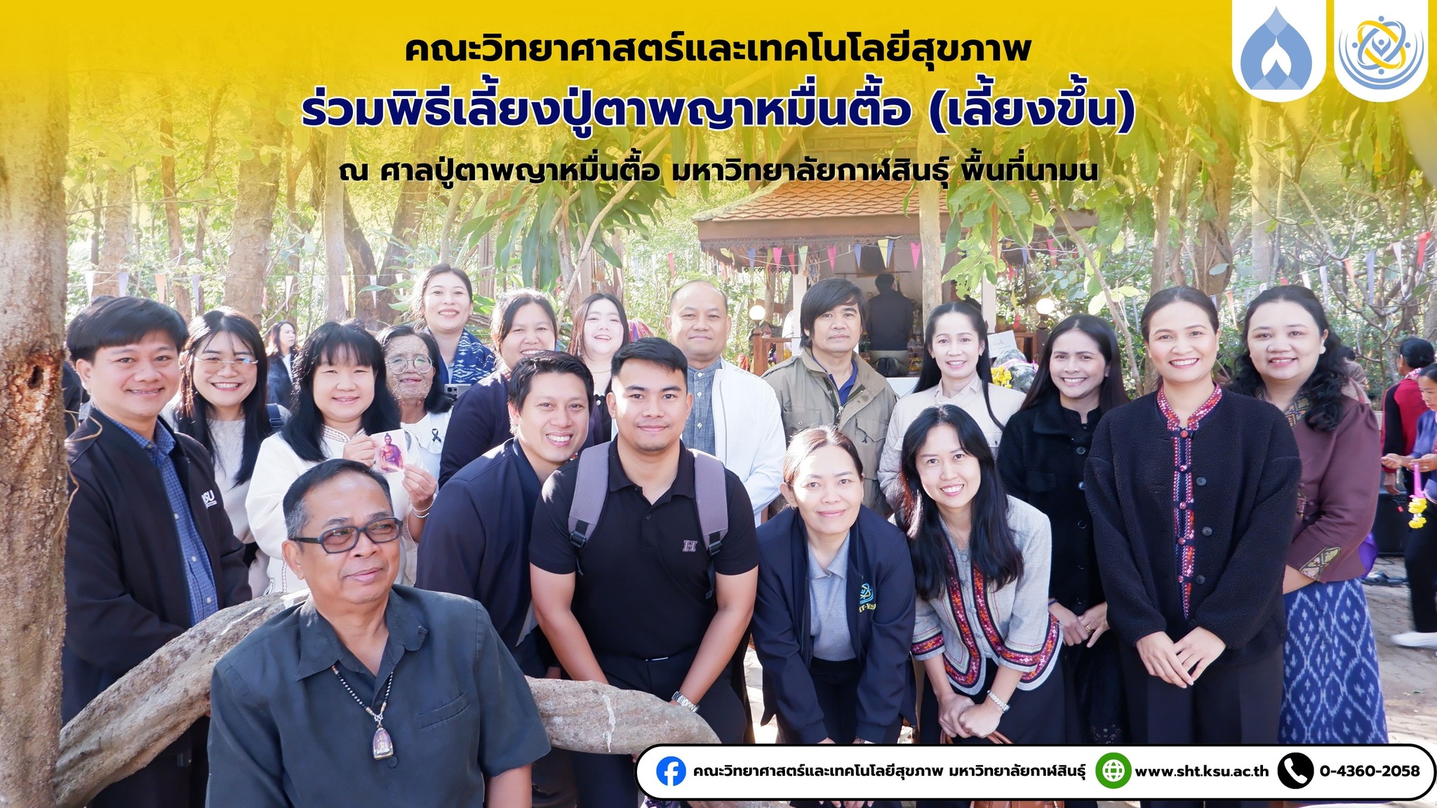 มื่อวันที่ 7 มกราคม พ.ศ. 2569 คณะวิทยาศาสตร์และเทคโนโลยีสุขภาพ มหาวิทยาลัยกาฬสินธุ์ ได้เข้าร่วมพิธี เลี้ยงปู่ตาพญาหมื่นตื้อ (เลี้ยงขึ้น) สิ่งศักดิ์สิทธิ์คู่มหาวิทยาลัย ณ มหาวิทยาลัยกาฬสินธุ์ พื้นที่นามน
