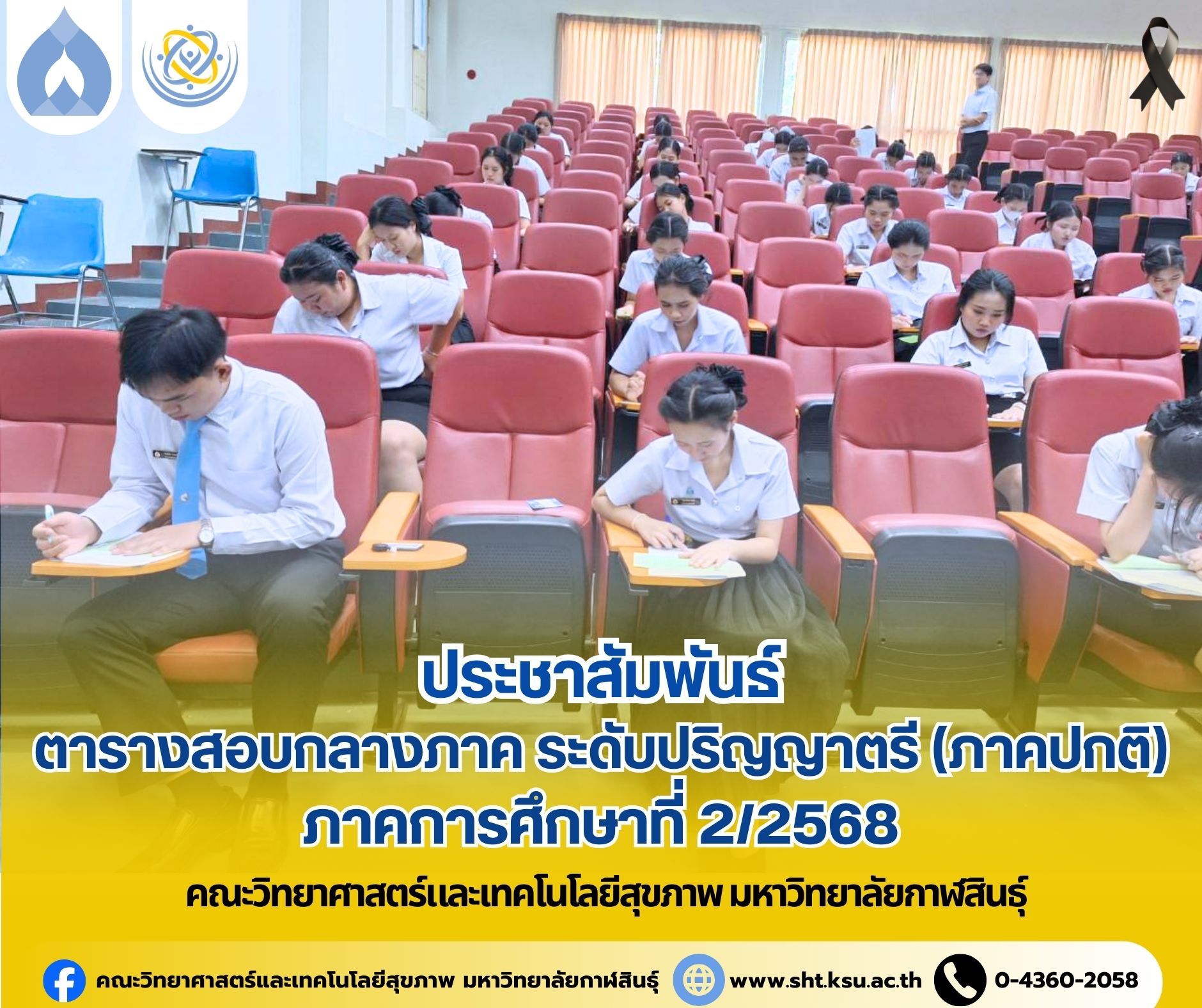 คณะวิทยาศาสตร์และเทคโนโลยีสุขภาพ มหาวิทยาลัยกาฬสินธุ์ ประชาสัมพันธ์ตารางสอบกลางภาค ภาคการศึกษาที่ 2/2568
