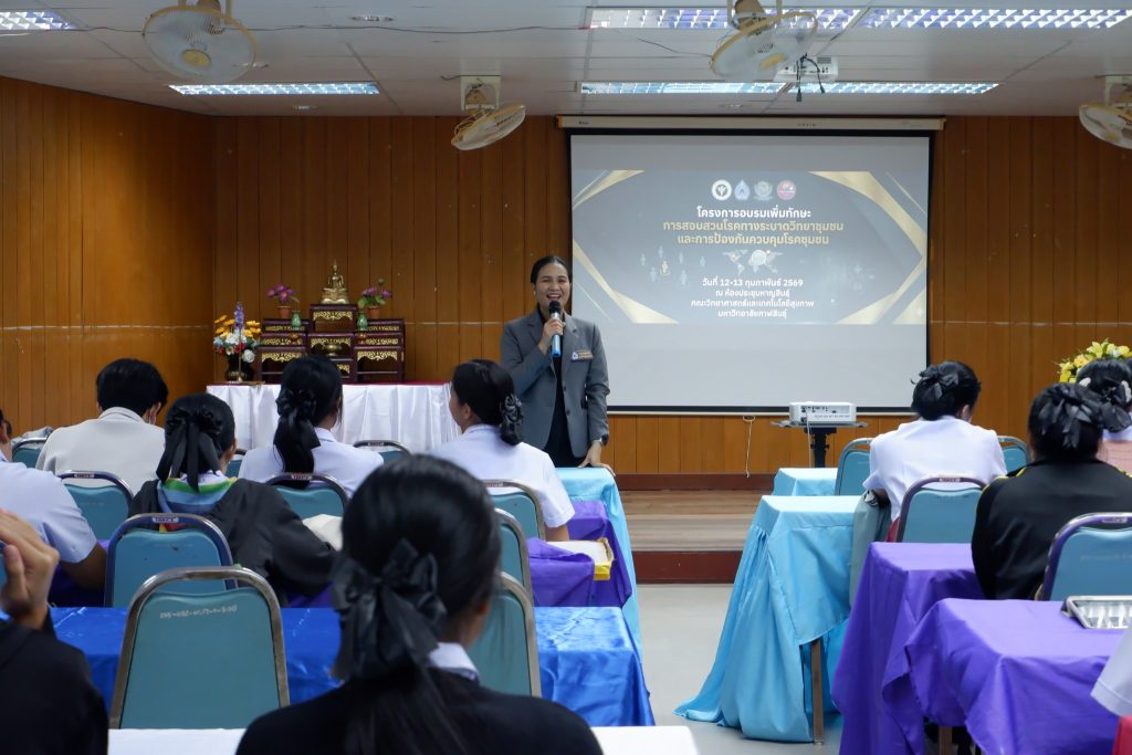 สาขาวิชาสาธารณสุขศาสตร์จัดโครงการอบรมเพื่อเสริมสร้างความรู้และพัฒนาทักษะด้านการเฝ้าระวังโรค การสอบสวนทางระบาดวิทยา และการป้องกันควบคุมโรคในระดับชุมชน ให้แก่นักศึกษาและผู้เข้าร่วมอบรม โดยได้รับเกียรติจาก ผศ. ดร.ปนัดดา โพธินาม รองคณบดีคณะวิทยาศาสตร์และเทคโนโลยีสุขภาพ กล่าวเปิดโครงการ พร้อมด้วยทีมวิทยากรผู้ทรงคุณวุฒิจากหน่วยงานสาธารณสุข ร่วมถ่ายทอดองค์ความรู้และประสบการณ์อย่างเข้มข้น