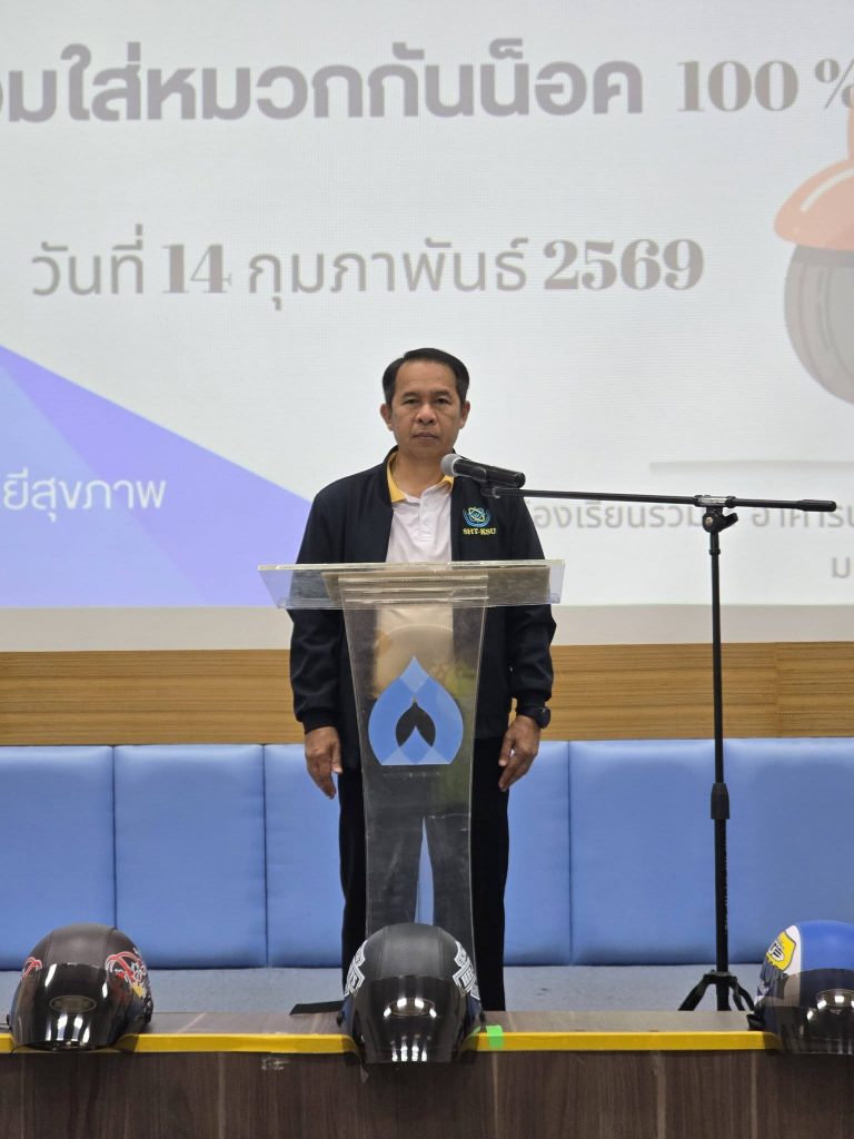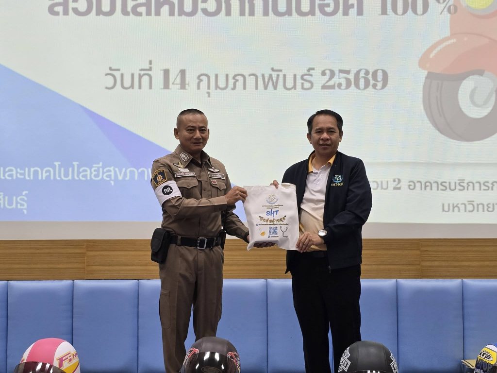 วันที่ 14 กุมภาพันธ์ 2569 คณะวิทยาศาสตร์และเทคโนโลยีสุขภาพ มหาวิทยาลัยกาฬสินธุ์ จัดกิจกรรมอบรมโครงการขับขี่ปลอดภัยสวมใส่หมวกนิรภัย 100 % ณ ห้องเรียนรวม 2 อาคารบริการการศึกษาและบริการกลาง มหาวิทยาลัยกาฬสินธุ์ พื้นที่นามน เพื่อสร้างความตระหนักให้กับนักศึกษาบุคลากรในการขับขี่และใช้รถใช้ถนนด้วยระมัดระวัง และสร้างวัฒนธรรมในองค์กรในการขับขี่ที่ปลอดภัย
