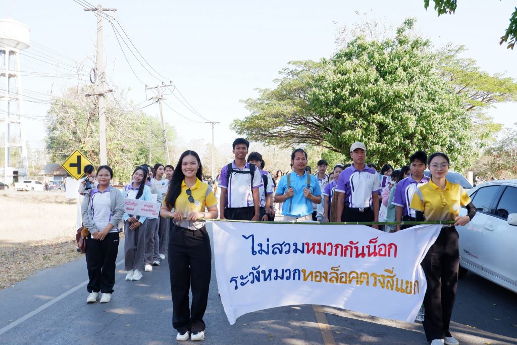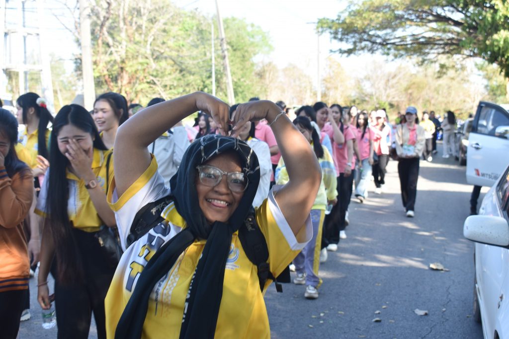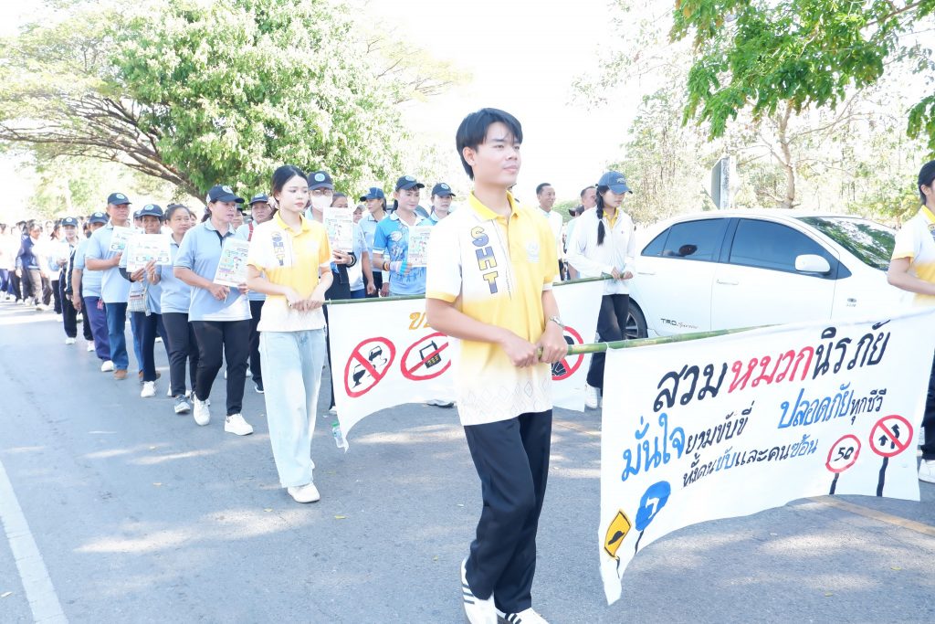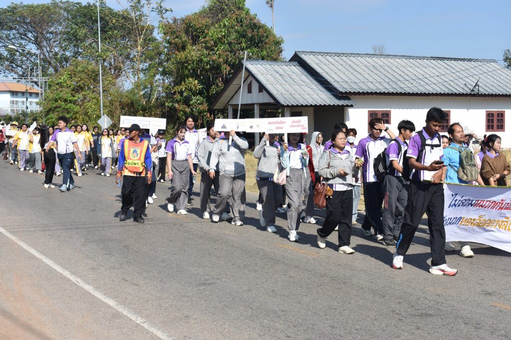 กิจกรรมรณรงค์มีโดยตลอดเส้นทาง ขบวนหน่วยงาน ผู้บริหาร บุคลากร นักศึกษา และประชาชนในชุมชนเข้าร่วมอย่างพร้อมเพรียง
