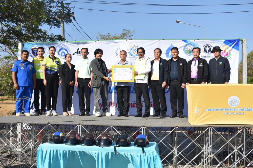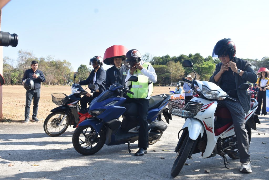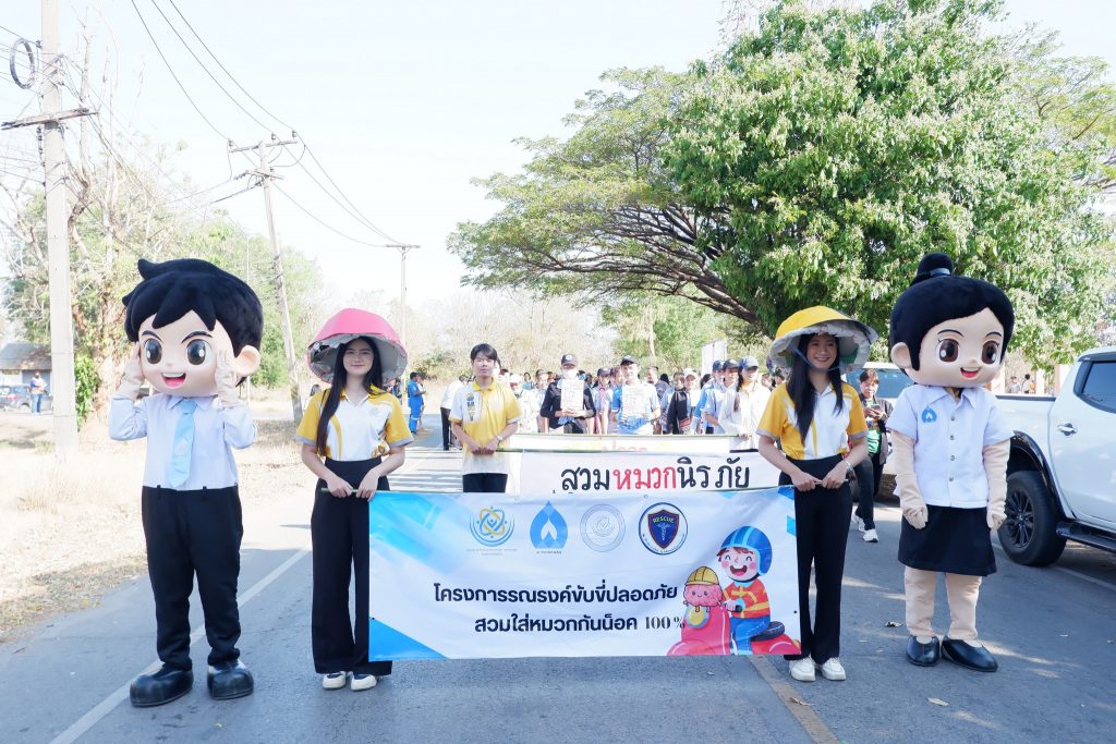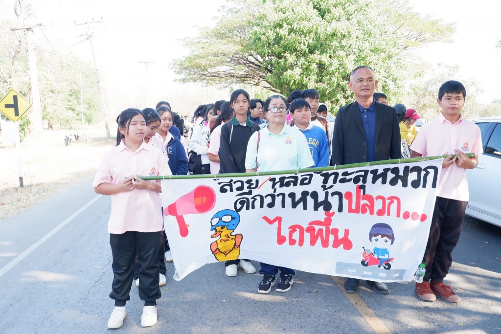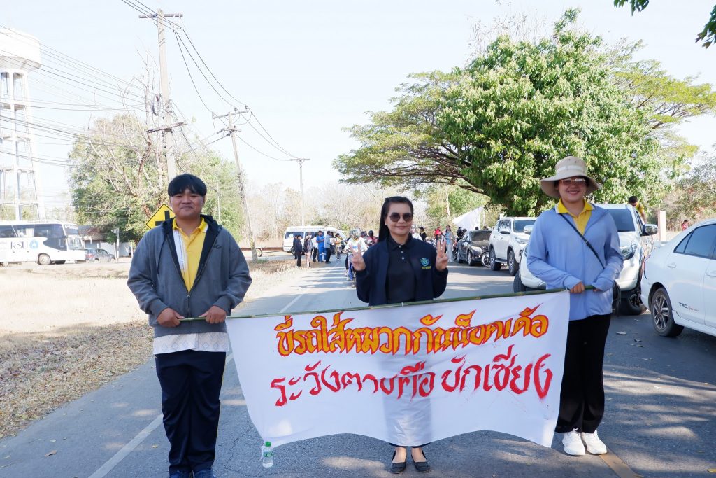 คณะวิทยาศาสตร์และเทคโนโลยีสุขภาพ มหาวิทยาลัยกาฬสินธุ์จัดโครงการเดินรณรงค์ “ขับขี่ปลอดภัย สวมหมวกนิรภัย 100%” ณ บริเวณหน้าโรงเรียนมอสวนขิงพิทยาสรรพ์ ถึงโรงพยาบาลส่งเสริมสุขภาพตำบลบ้านหัวงัว