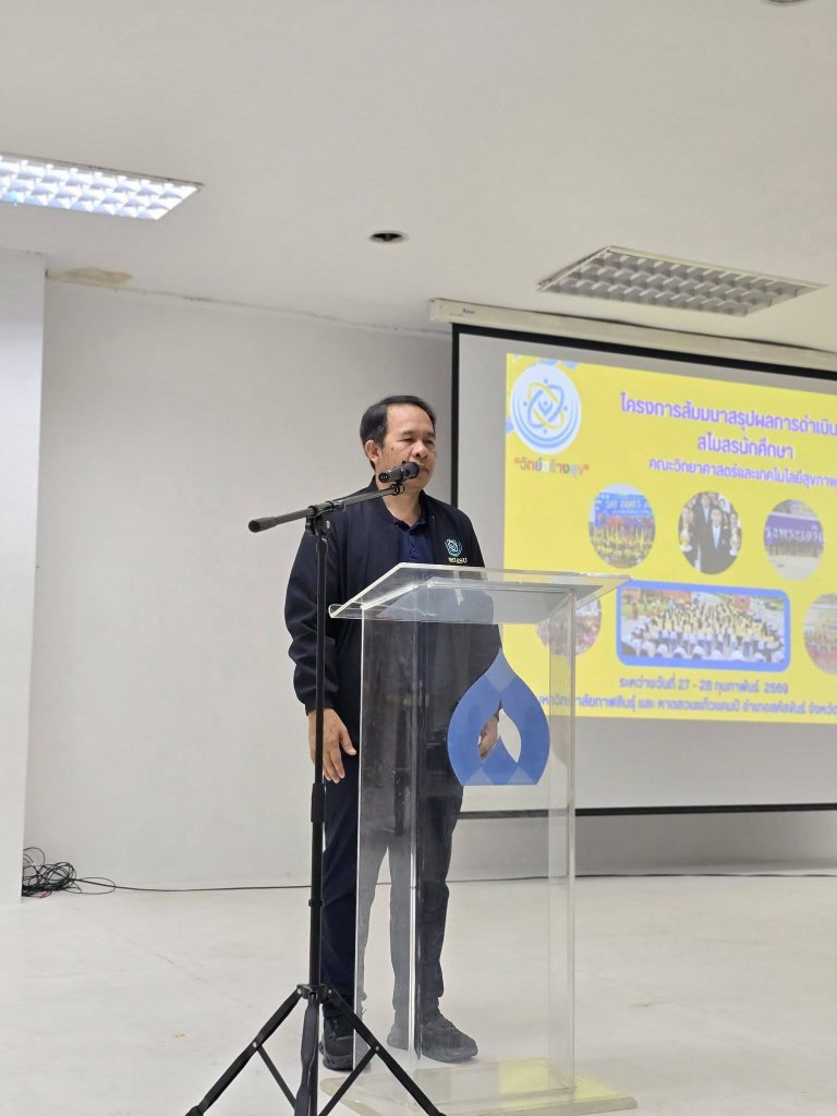 วันที่ 27 กุมภาพันธ์ 2569 ผศ.ดร. ทรงกรด พิมพิศาล คณบดีคณะวิทยาศาสตร์และเทคโนโลยีสุขภาพ เป็นประธานในพิธีเปิดโครงการ สัมมนาสรุปผลการดำเนินงานสโมสรนักศึกษาคณะวิทยาศาสตร์และเทคโนโลยีสุขภาพ ณ ห้องดอกคูน อาคารวิทยบริการและสารสนเทศ มหาวิทยาลัยกาฬสินธุ์ พื้นที่นามน