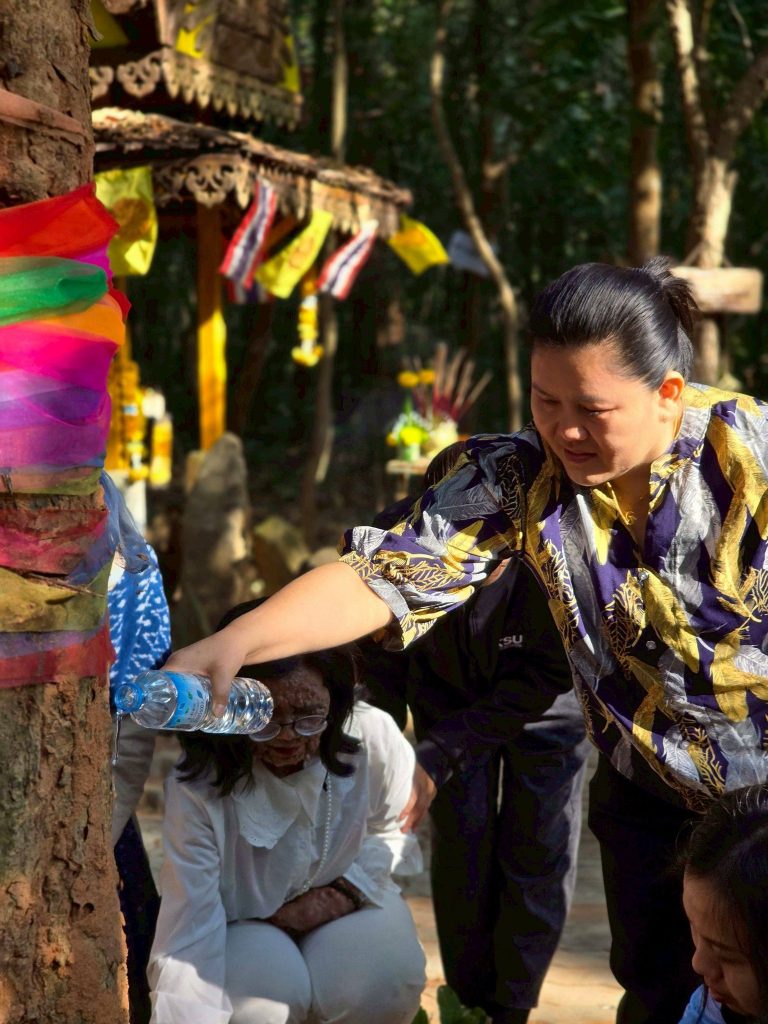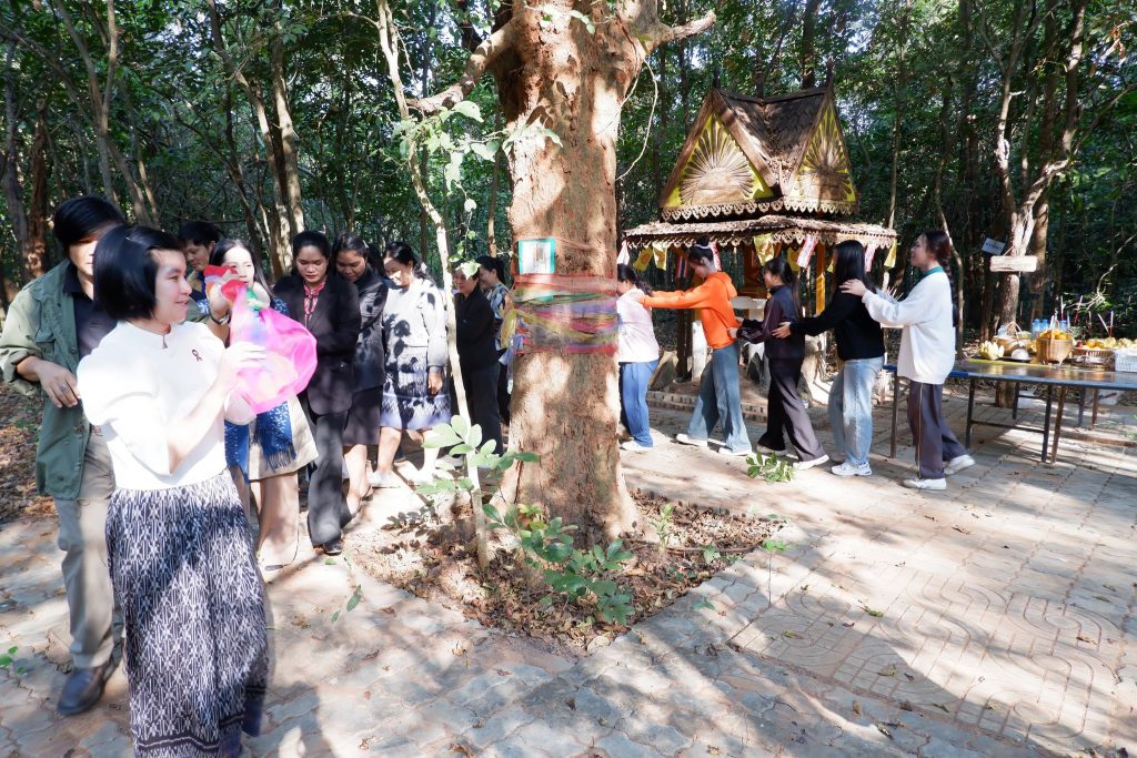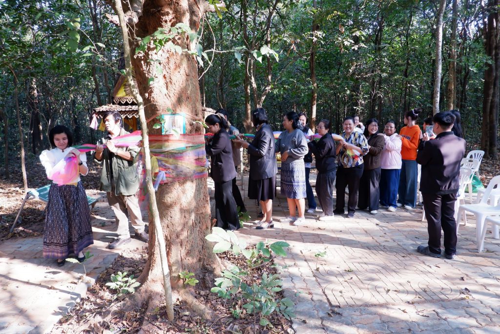 กิจกรรมดังกล่าวจัดขึ้นเพื่อส่งเสริมจิตสำนึกในการอนุรักษ์ทรัพยากรธรรมชาติ ปลูกฝังความเคารพและความกตัญญูต่อพระแม่ธรณี ผืนแผ่นดิน ป่าไม้ และสิ่งแวดล้อม เชื่อมโยงคุณค่าทางธรรมชาติกับจิตวิญญาณในการดำรงชีวิต โดยมีคณาจารย์ บุคลากร และนักศึกษาเข้าร่วมกิจกรรมอย่างพร้อมเพรียง บรรยากาศเป็นไปด้วยความสงบ เรียบง่าย และเปี่ยมด้วยความหมาย ![]()