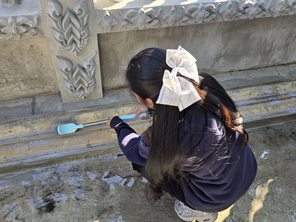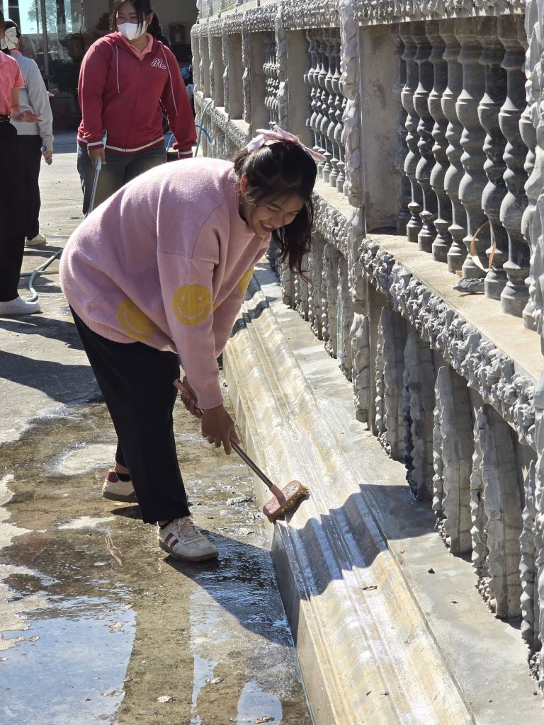 ภายในกิจกรรม ผู้เข้าร่วมได้ร่วมกิจกรรมอาบแดดฟังธรรม เพื่อเรียนรู้และน้อมนำหลักธรรมทางพระพุทธศาสนามาประยุกต์ใช้ในการดำเนินชีวิต ควบคู่กับกิจกรรม บำเพ็ญประโยชน์และจิตอาสา ทำความสะอาดพื้นที่ภายในวัด เพื่อส่งเสริมความรับผิดชอบต่อส่วนรวม และสร้างจิตสำนึกด้านอนามัยสิ่งแวดล้อม