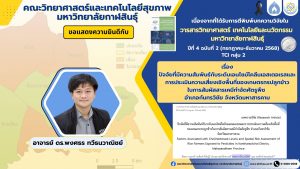 ขอแสดงความยินดีกับ อาจารย์ ดร.พงศธร ทวีธนวาณิชย์ อาจารย์ประจำสาขาวิชาวิทยาศาสตร์และอนามัยสิ่งแวดล้อม ผลงานวิจัยเรื่อง “ปัจจัยที่มีความสัมพันธ์กับระดับเอนไซม์โคลีนเอสเตอเรสและการประเมินความเสี่ยงเชิงพื้นที่ของเกษตรกรปลูกข้าวในการสัมผัสสารเคมีกําจัดศัตรูพืช อําเภอกันทรวิชัย จังหวัดมหาสารคาม”